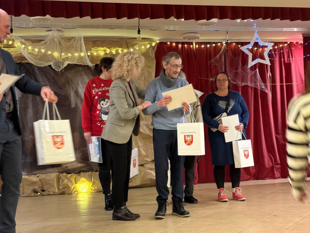 Nasi mieszkańcy DPS oraz uczestnicy WTZ aktywnie uczestniczyli w spotkaniu wykonując na scenie kolędę „Gdy się Chrystus rodzi”.