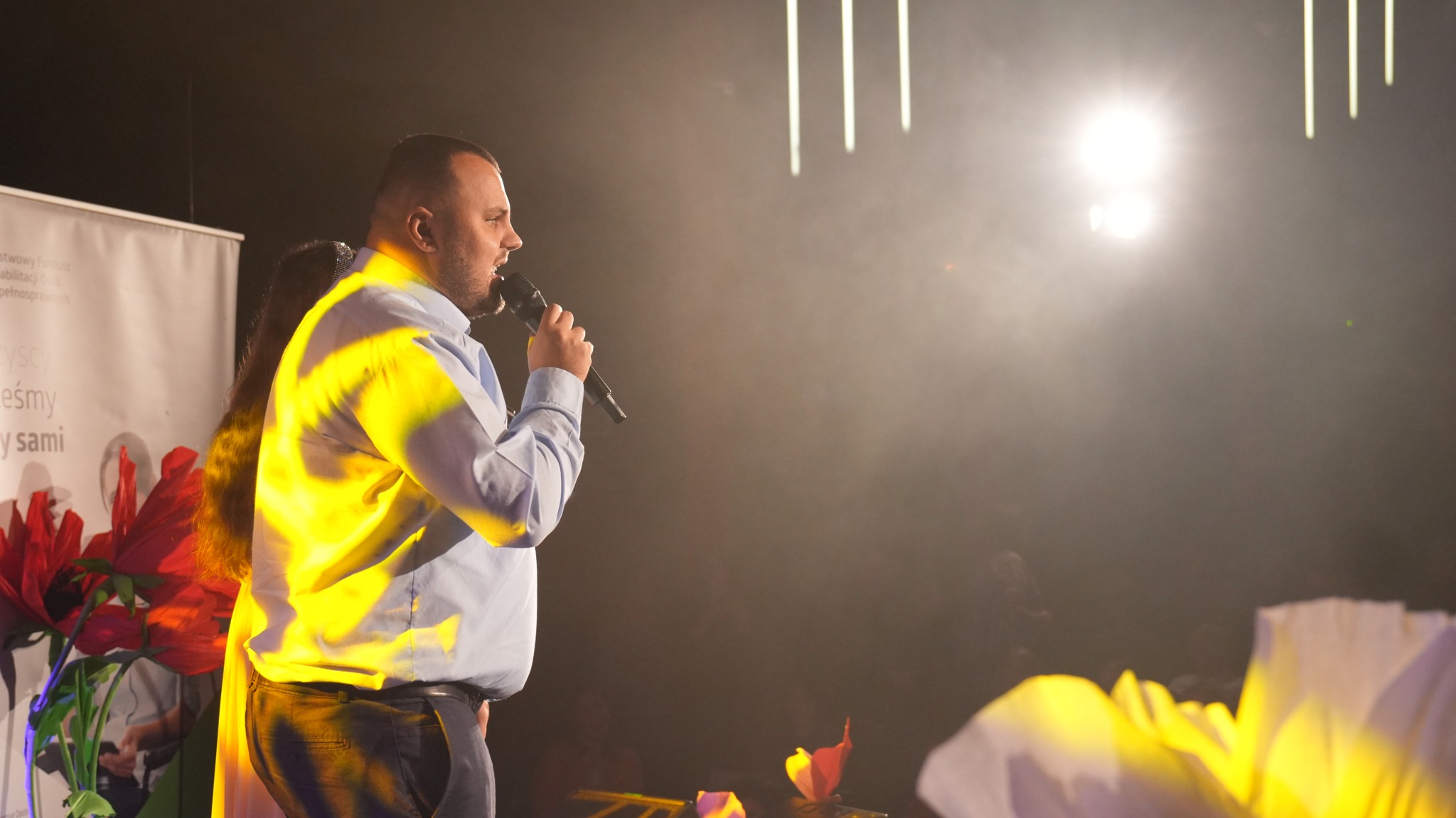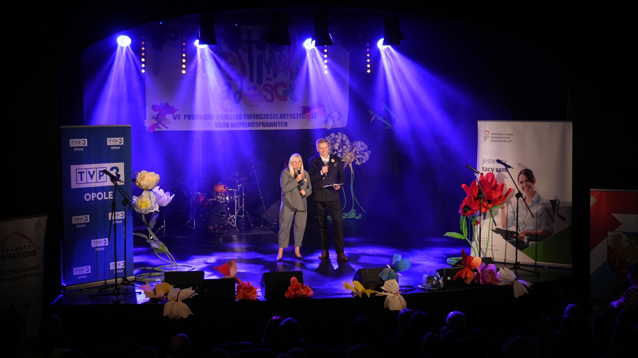 Od pierwszych chwil przestrzeń wypełniła się energią – śmiechem, muzyką i szczerymi brawami. Na scenie zaprezentowali się artyści z wielu zaprzyjaźnionych placówek wsparcia, m.in. SOSW w Głogówku, ŚDS w Prudniku oraz WTZ z Prudnika, Nysy, Głuchołaz, Jędrzejowa i innych ośrodków. Występy zachwycały różnorodnością, raz wzruszając publiczność do łez, a raz wywołując entuzjastyczne salwy śmiechu.
