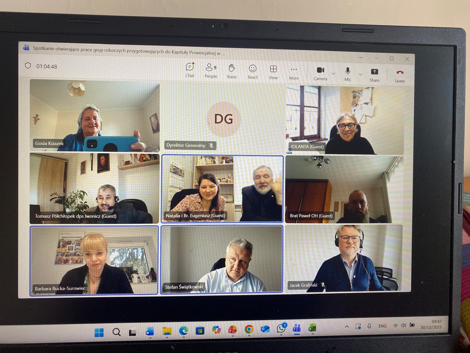 W dniu 30.10.2025 r. na platformie TEAMS odbyło się spotkanie otwierające pracę grup roboczych przygotowujących do Kapituły Prowincjalnej w 2026 roku. W spotkaniu wzięli udział Bracia i Współpracownicy, którzy pełnią funkcję Liderów i Koordynatorów w grupach. Moderatorem i gościem specjalnym spotkania była siostra Małgorzata Książek z Zakonu Sióstr Franciszkanek Misjonarek Maryi, która wspierała nas w przygotowaniach do Kapituły Generalnej w 2024 roku. Jej cenne wskazówki ułatwią nam twórczą i szczerą pracę w grupach. Pomogą w uniknięciu trudnych sytuacji, z którymi możemy się spotkać przy głębokim rozeznaniu trzech tematów: