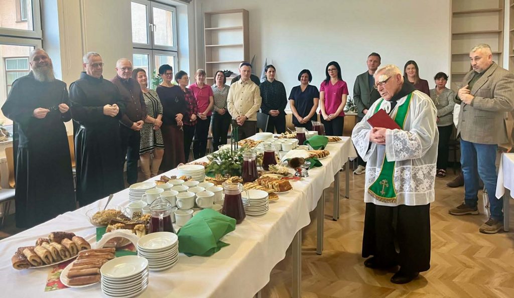 17 grudnia br. w naszym Domu odbyło się spotkanie towarzyskie przy okazji nadchodzących świąt Bożego Narodzenia połączone z dzieleniem się opłatkiem i życzeniami pełnych ciepła i dobrych intencji. W wydarzeniu uczestniczyli licznie zgromadzeni pracownicy naszego Domu z naszym Panem dyrektorem na czele i bracia pod przewodnictwem naszego Gościa Brata Pawła Kulki OH, który odczytał piękne słowo przesłane od naszego Ojca Prowincjała Franciszka Salezego Chmiela OH. Poświecenia pokarmów i błogosławieństwa dokonał nasz kapelan Ojciec Henryk Molenda.
