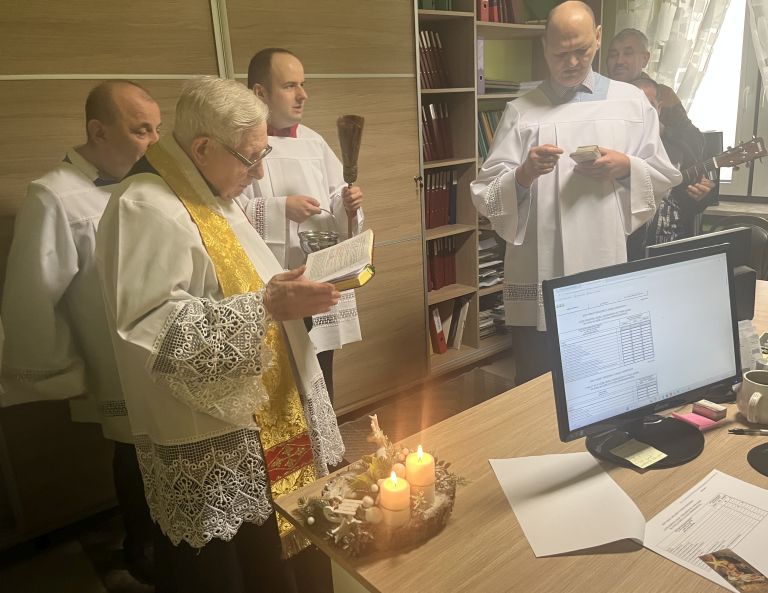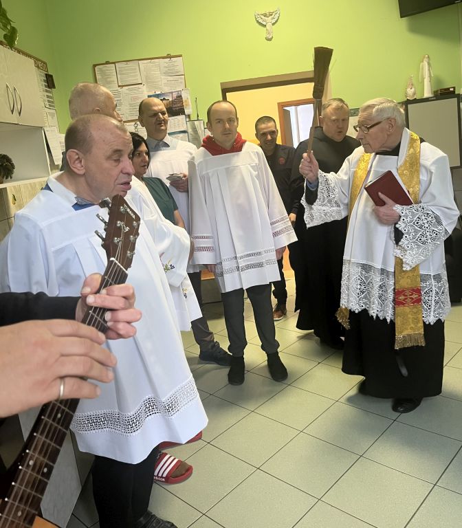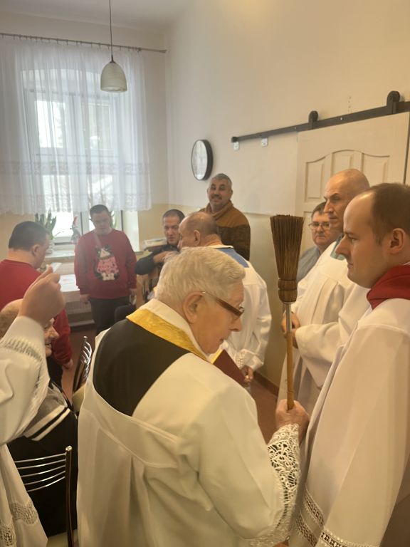 Tradycja wizyty duszpasterskiej, zwana popularnie „kolędą” zawiera w sobie bogactwo znaków i treści. Piękna i głęboka jest tradycja śpiewanych kolęd, które są zwiastowaniem radości o Narodzonym, który chce być „Bogiem z nami”. Otwierając drzwi domu, by zaprosić Emmanuela jest świadectwem otwarcia serca, umysłu i duszy podkreślając, że prawdziwe zrozumienie i szczęście pochodzi z wewnętrznej integracji, gdzie serce kieruje się miłością, umysł akceptuje i działa, a dusza doświadcza pełni, często wbrew logice rozumu, pokazując, że to, co niewidoczne dla oczu okazuje się najważniejsze. Bóg zapłać naszemu kapelanowi ks. Henrykowi Molendzie, br. Dominikowi, dyr. Tomaszowi i ministrantom.