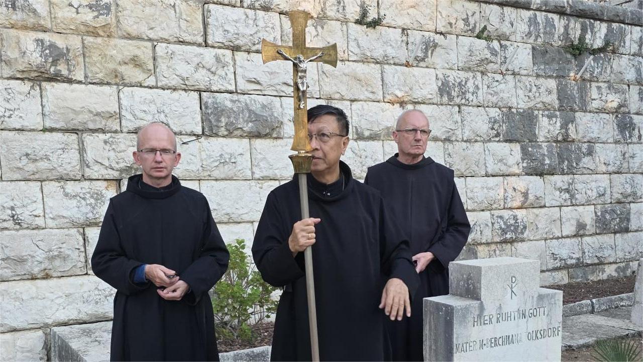 „Postarajmy się uświadomić sobie, że każdy z tych grobów kryje konkretną osobę, która miała swoich przyjaciół i rodzinę” – przypominał o. Steven – kapelan Szpitala Św. Rodziny w Nazarecie – podczas tradycyjnego nabożeństwa w intencji zmarłych, które odbyło się na tut. cmentarzu w Uroczystość Wszystkich Świętach. W procesji na cmentarz, poprzedzonej uroczystymi nieszporami w kaplicy szpitalnej, wzięły udział siostry i bracia posługujące na co dzień w Nazarecie.