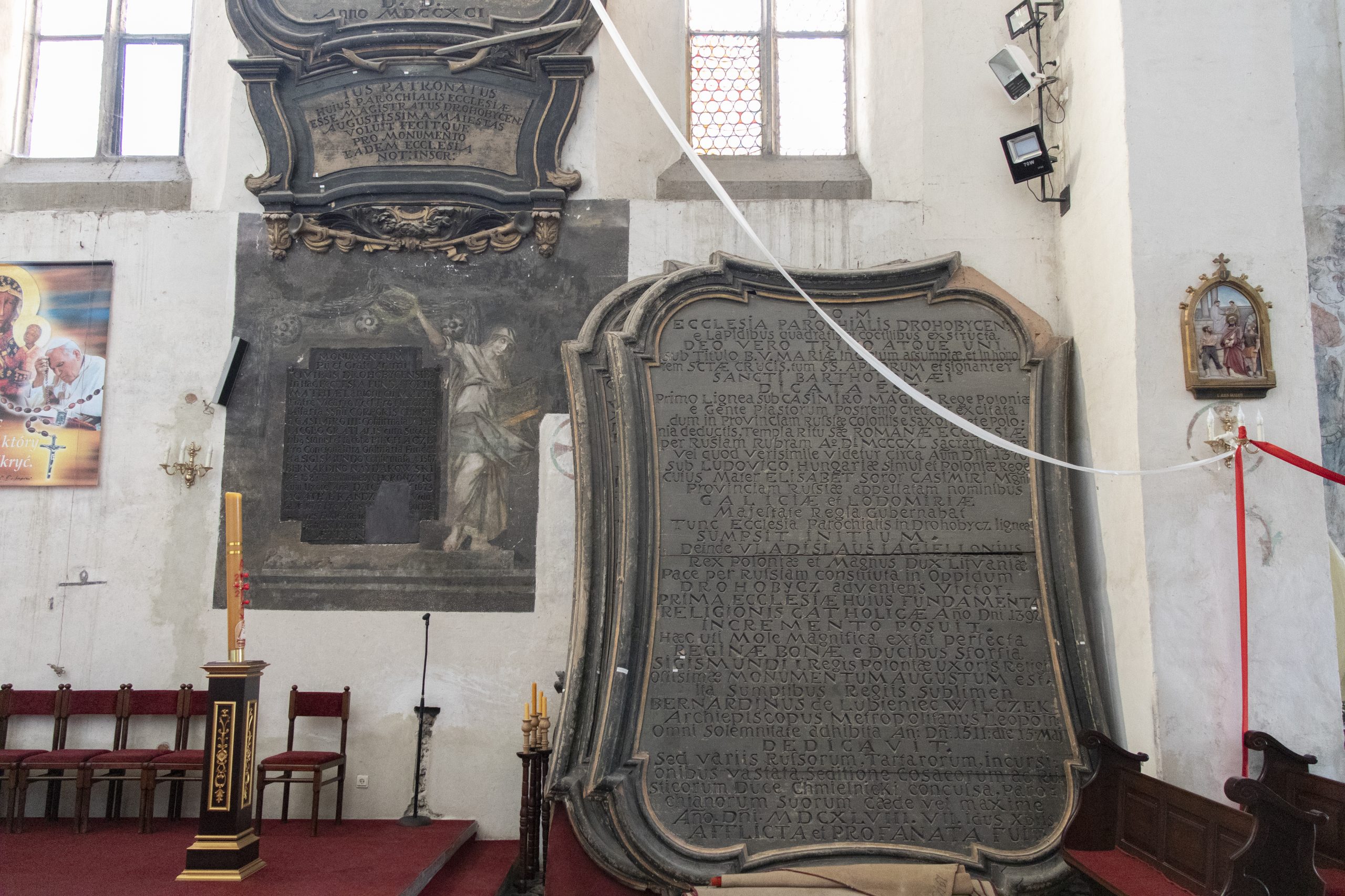 Konserwacja tablic inskrypcyjnych z kościoła pw. Wniebowzięcia NMP, św. Krzyża i św. Bartłomieja w Drohobyczu