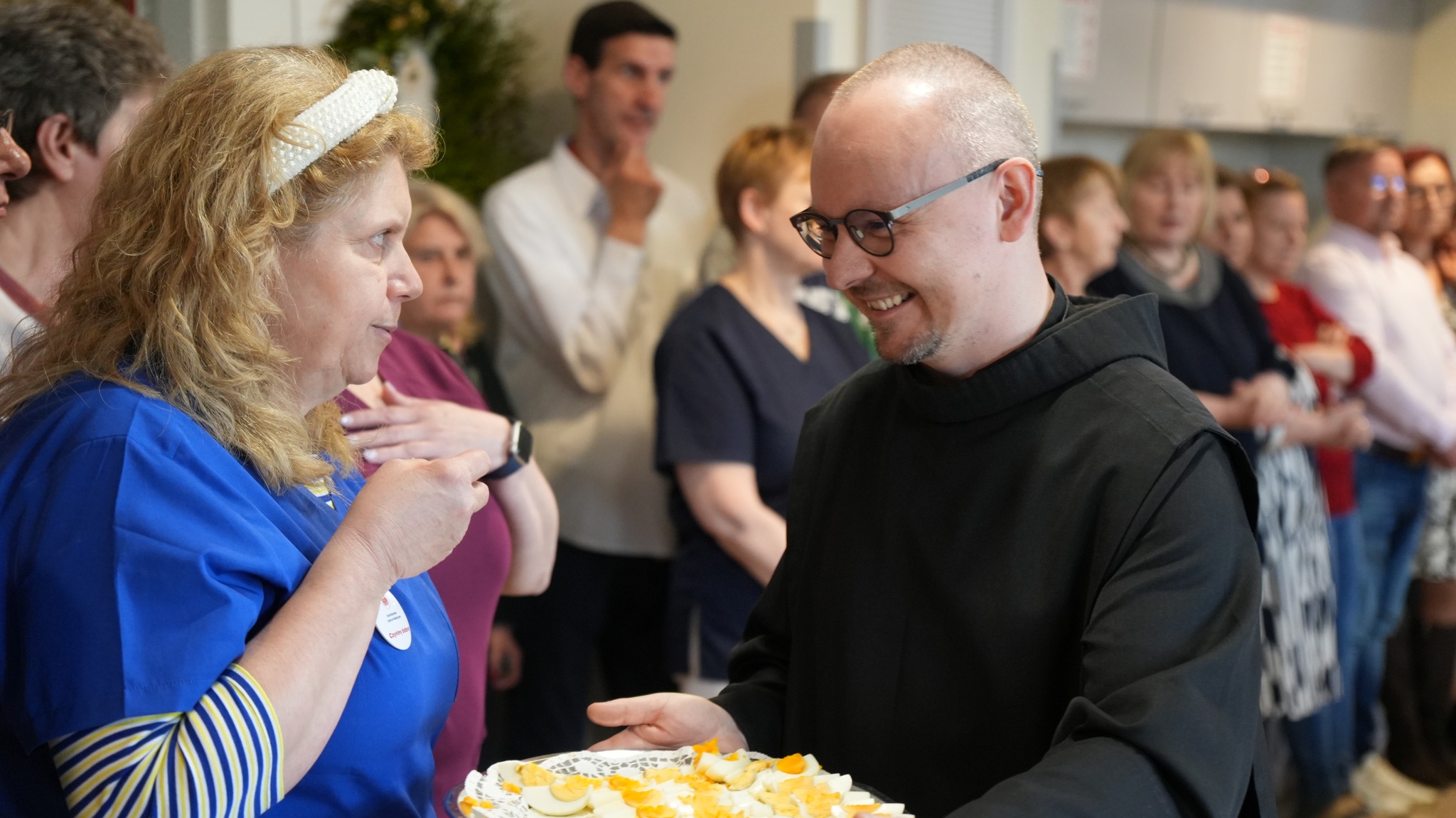 31 marca 2026 roku o godzinie 13.00, świetlica bonifraterskiego Domu Geriatryczno-Rehabilitacyjnego w Warszawie stała się miejscem wyjątkowego spotkania – w atmosferze zbliżających się Świąt Zmartwychwstania Pańskiego zgromadzili się przedstawiciele Kurii Prowincjalnej, lokalnych dzieł, Bonifraterskiego Centrum Medycznego i Fundacji Bonifraterskiej.