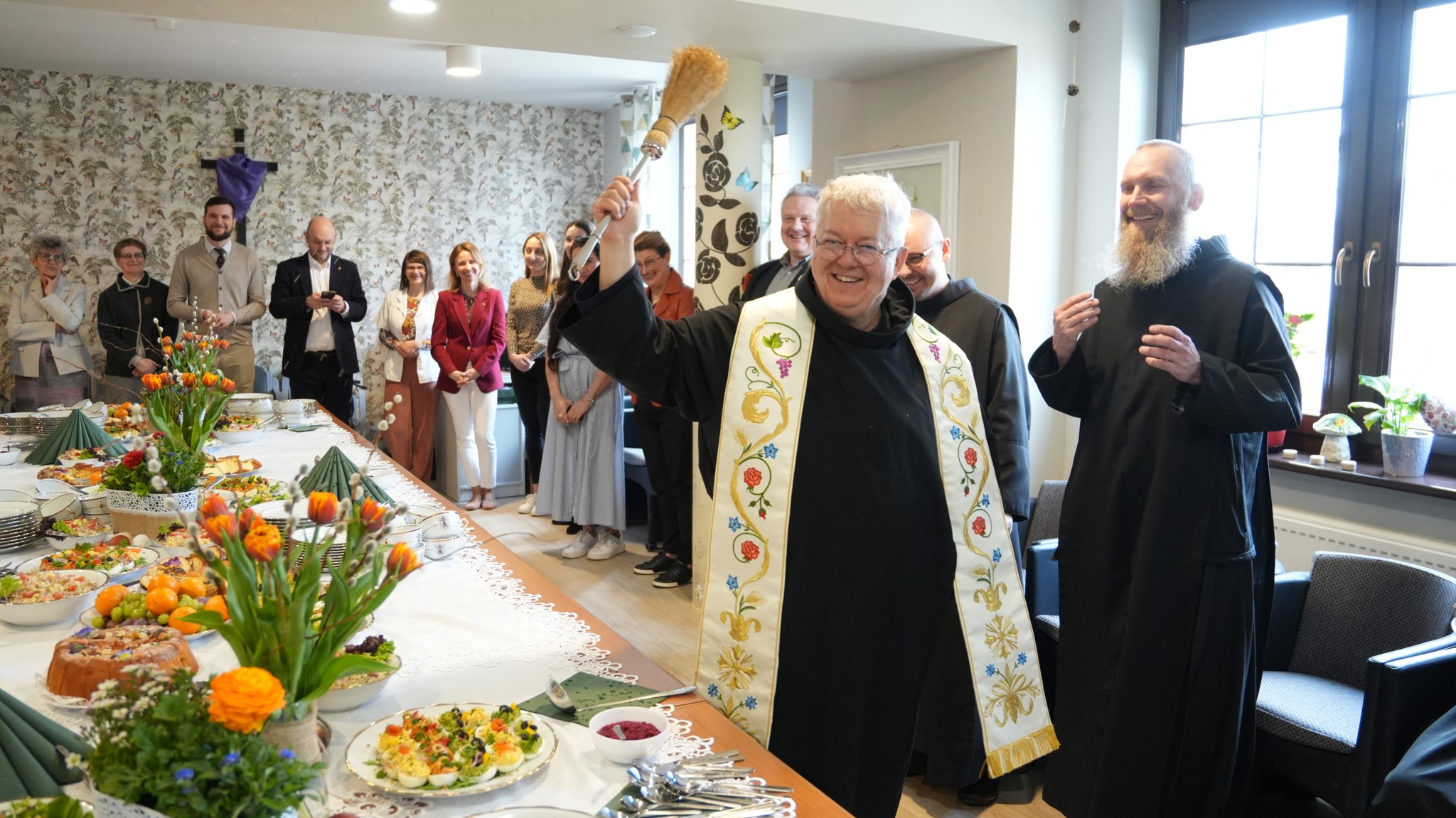 Po zakończeniu części oficjalnej nastąpiło tradycyjne poświęcenie pokarmów dokonane przez br. Bruno Maria Neumanna, po którym wszyscy obecni składali sobie nawzajem serdeczne życzenia świąteczne. Były to chwile przepełnione autentyczną radością wynikającą z wypełniania wspólnej misji.