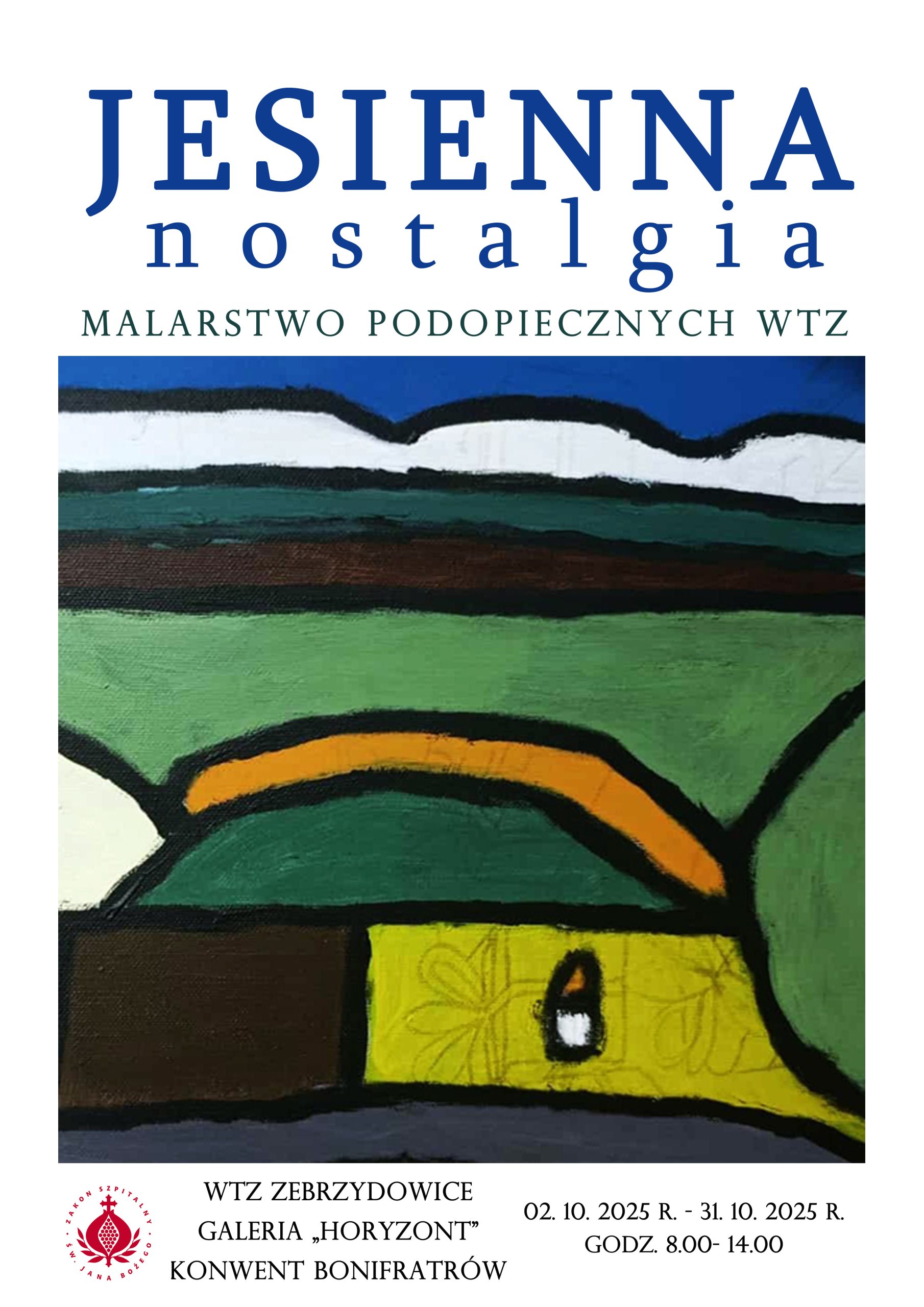 Dzisiaj 2 października 2025 r. w galerii Horyzonty WTZ w Zebrzydowicach odbył się wernisaż malarstwa podopiecznych ośrodka. Zbiorowa wystawa zatytułowana „Jesienna nostalgia” skupiła prace czterech twórców: Justyny, Rafała, Bartka i Michała. Pozornie kolorowe, soczyste płótna przekierowują naszą uwagę w stronę zmieniającej się natury, ulotności życia, przemijania. Serdecznie zapraszamy do zwiedzania wystawy, która będzie dostępna do 31.10.2025 r. w godz. 8.00-14.00.